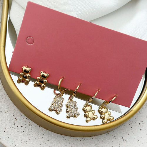 Trio de brincos Folheado a ouro 18k Inspiração Virginia cravejado.