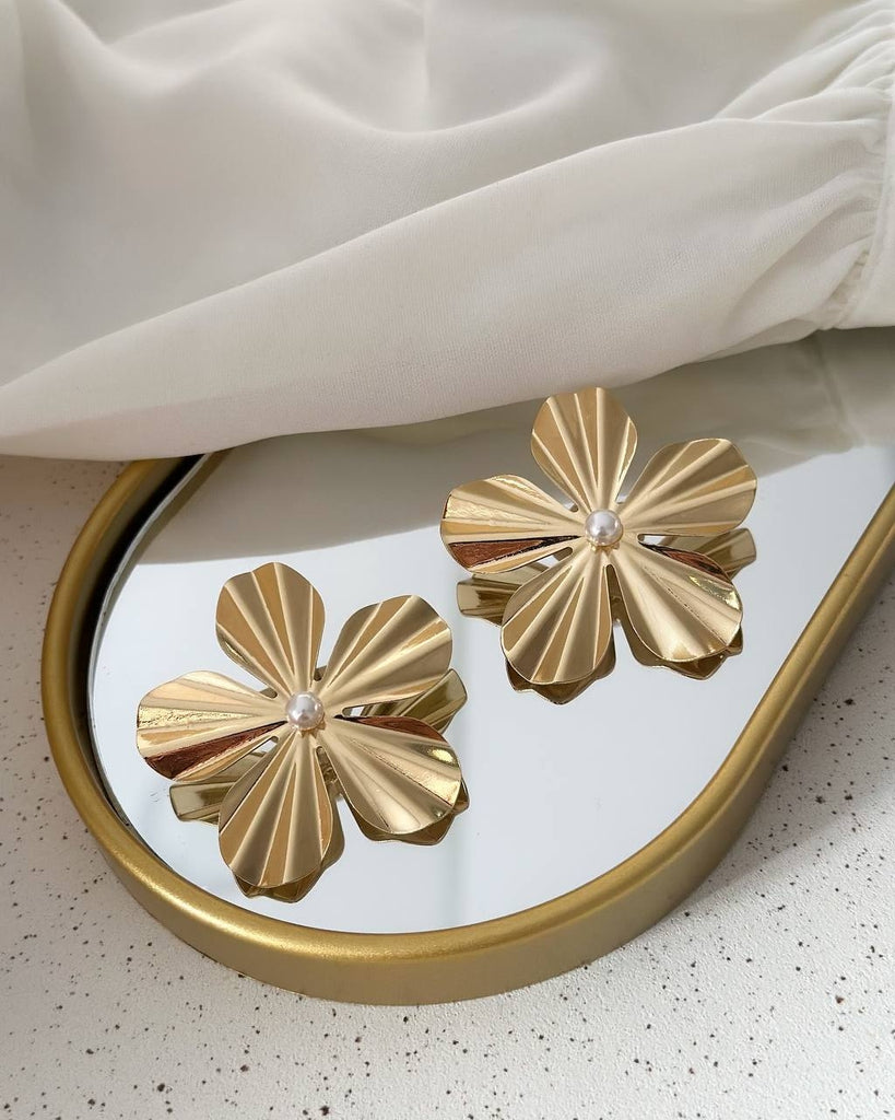 Brinco Folheado a ouro 18k Martelado e pérola no centro.