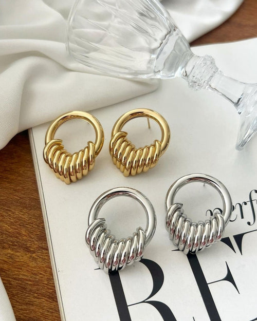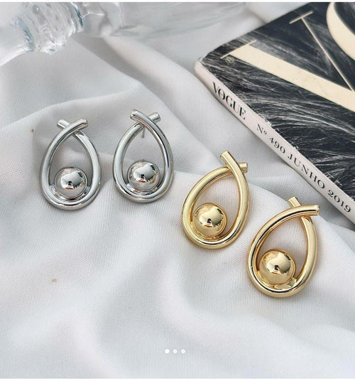 Brinco Folheado a ouro 18k Laminado entrelaçados com bolinha no centro