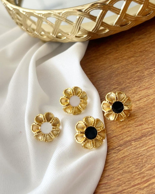 Brinco Folheado ouro 18k Flor com detalhe preto.