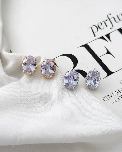 Brinco Folheado a ouro Oval com zirconia Max dourado.