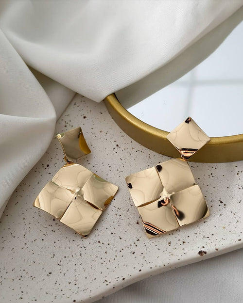 Brinco Folheado a ouro 18k Quadrado duo com detalhes