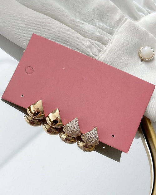 Trio de brincos Folheado a ouro 18k Inspiração Virginia cravejado com zirconia.