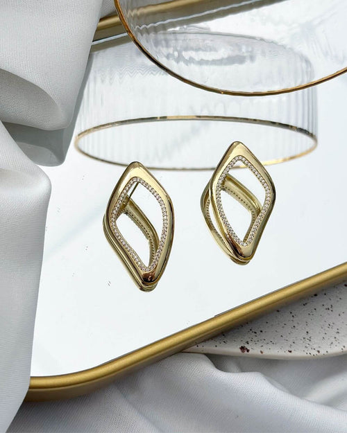 Brinco Folheado a ouro 18k Duo Quadrado cravejado.