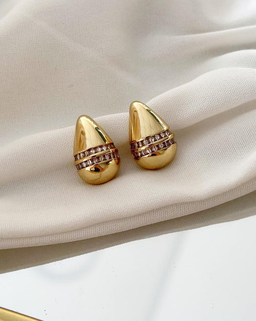 Brinco Folheado a ouro 18k Mini gota com 2 fileiras de zirconias