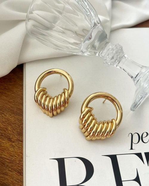 Brinco Folheado a ouro 18k. Elos entrelaçados detalhado.
