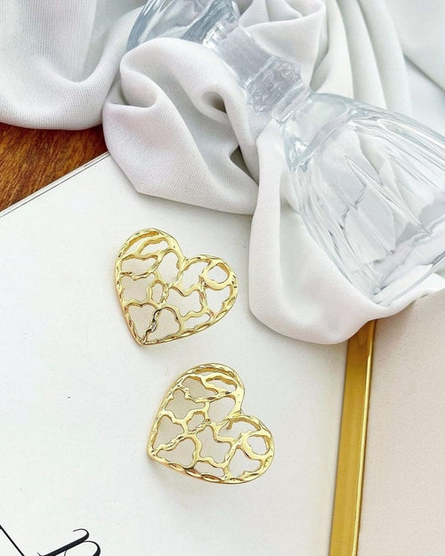 Brinco Folheado a ouro 18k Coração vazado Martelado.