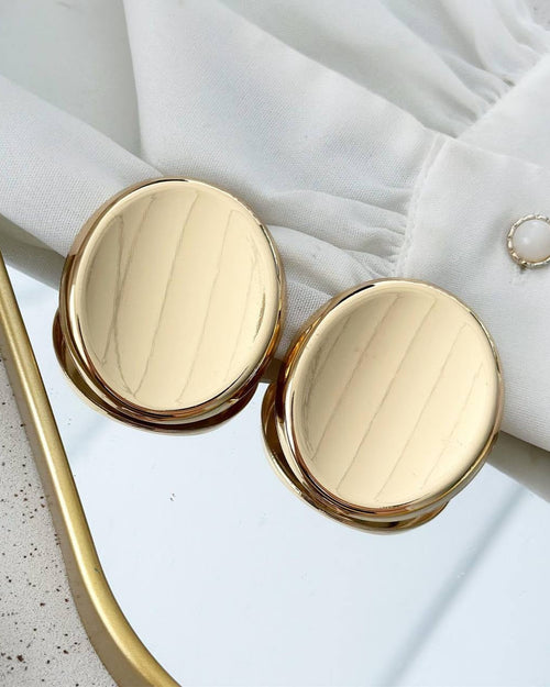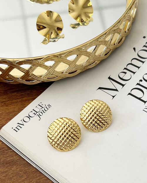 Brinco Folheado a ouro 18k Esfera central detalhado.