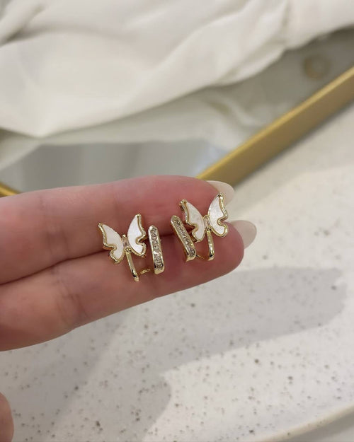 Brinco Folheado a ouro 18k Borboleta cravejada.