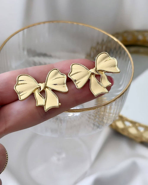 Brinco Folheado a ouro 18k Laço borda detalhada.