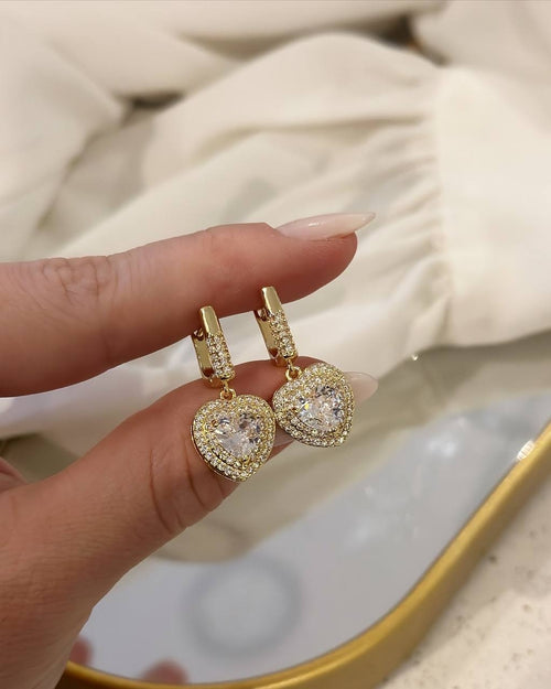 Brinco Folheado a ouro 18k Click coração cravejado.