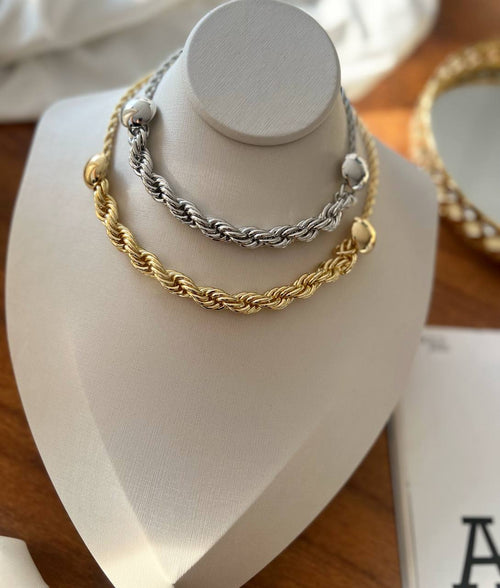 Choker Folheado ouro 18k e prata Elos cordão torcido.