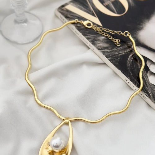 Choker prata e Folheado a ouro 18k pingente martelado com pérola.