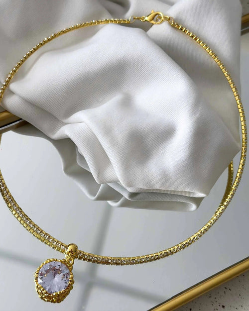 Choker Tiffany Folheado a ouro 18k com pedrinhas cristal.