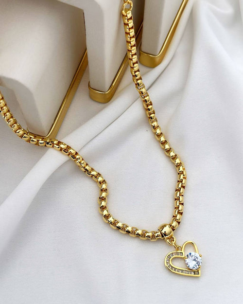 Colar Folheado a ouro 18k veneziana com pingente coração vazado com zirconia penturada.