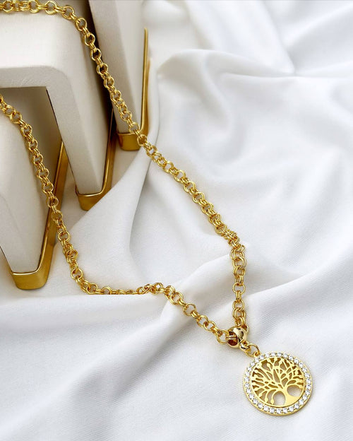 Colar Folheado a ouro 18k Elo português Árvore da Vida Cravejado.