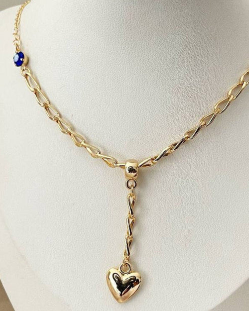 Colar Folheado a ouro 18k Elos trançados ,strass e pingente de coração.