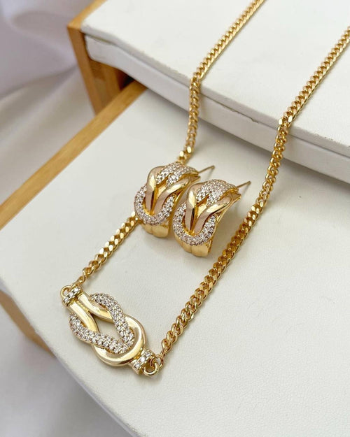 Conjunto Folheado a ouro 18k pedra com detalhes cravejado.
