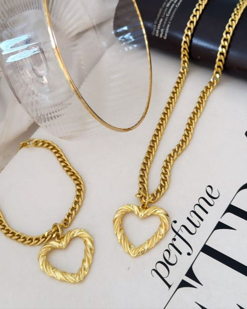 Conjunto Folheado a prata corrente múltiplas com coração. Colar e pulseira.