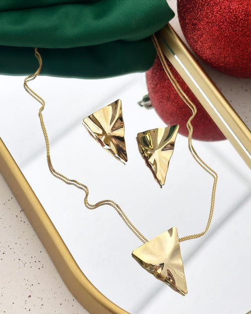 Conjunto Folheado a ouro 18k Triangulo martelado.