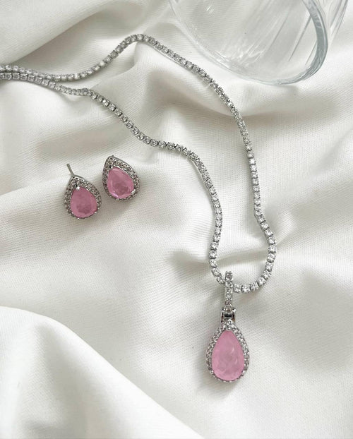 Conjunto Folheado a prata Riviera com pingente gota zirconia fusion e borda cravejada.