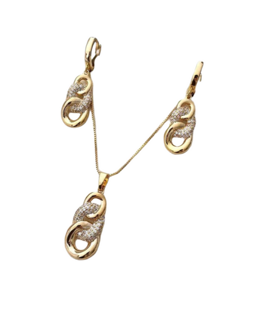 Conjunto Folheado a ouro 18k Elos cravejado com zirconia.