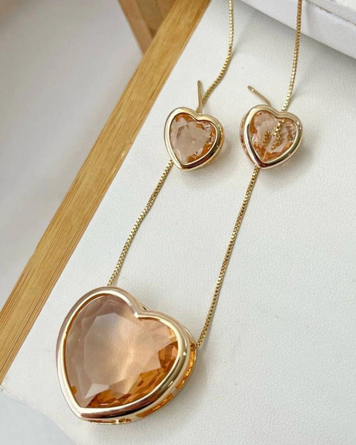 Conjunto Folheado a ouro 18k Coração de zirconia rose.