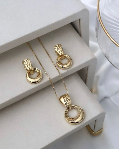Conjunto Folheado a ouro 18k pedra com detalhes cravejado.