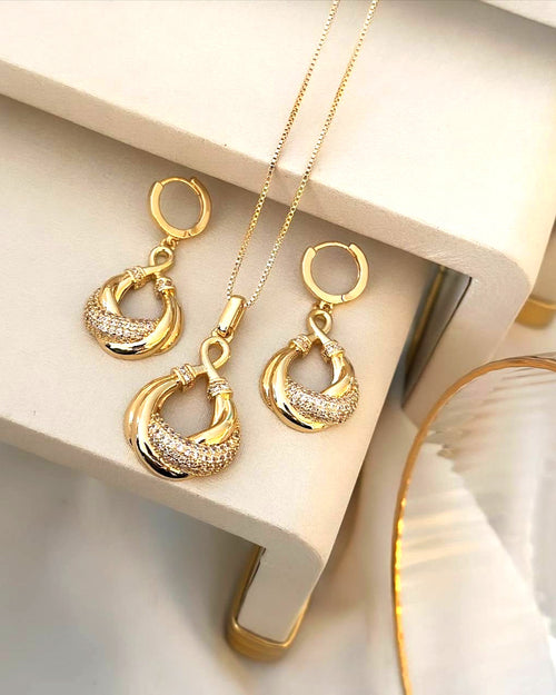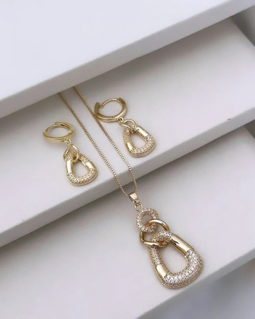 Conjunto Folheado a ouro 18k Entrelaçado cravejado.