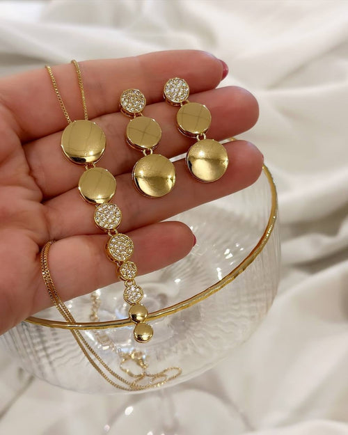 Conjunto Folheado a ouro 18k Esfera cravejada.