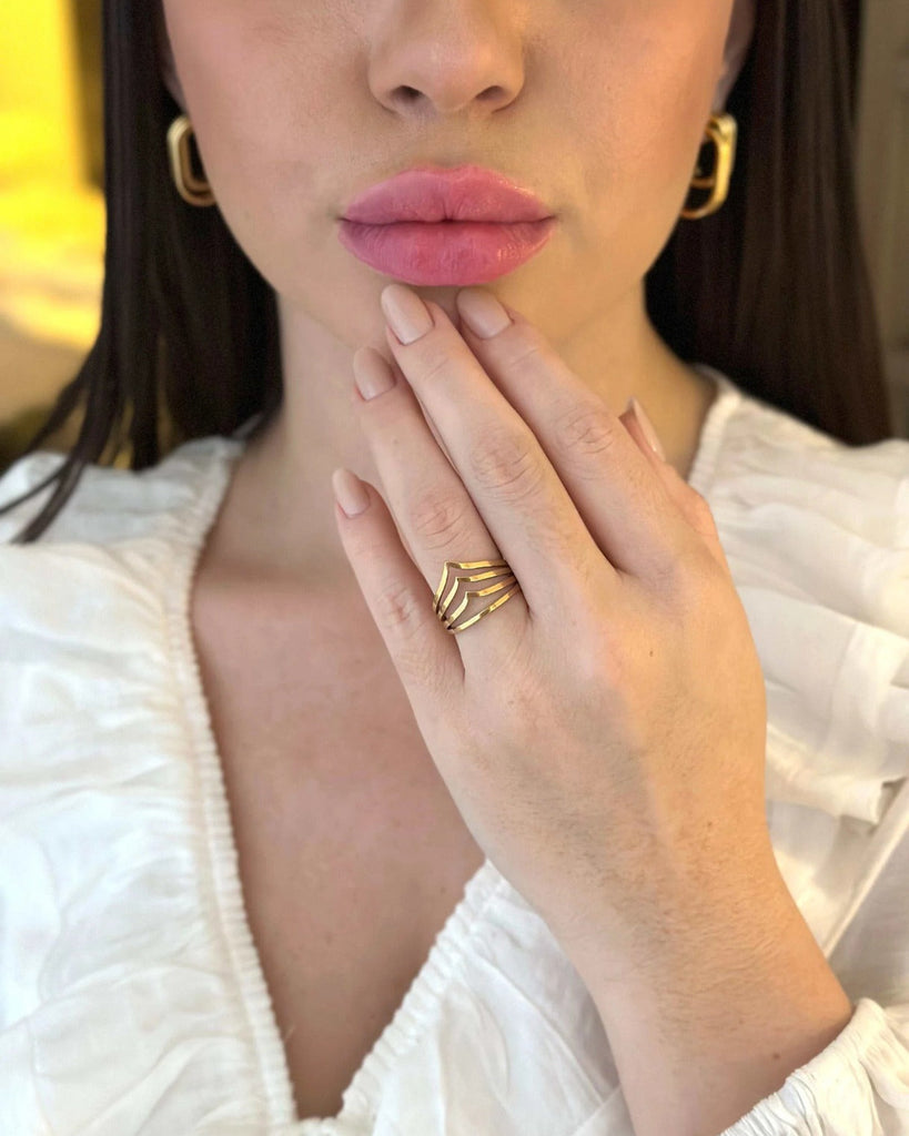 Anel de Aço Inoxidável dourado 4 fileiras vazadas tamanhos variados.