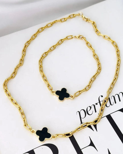 Colar e pulseira Folheado a ouro 18k Inspiração Van Cleef preto.