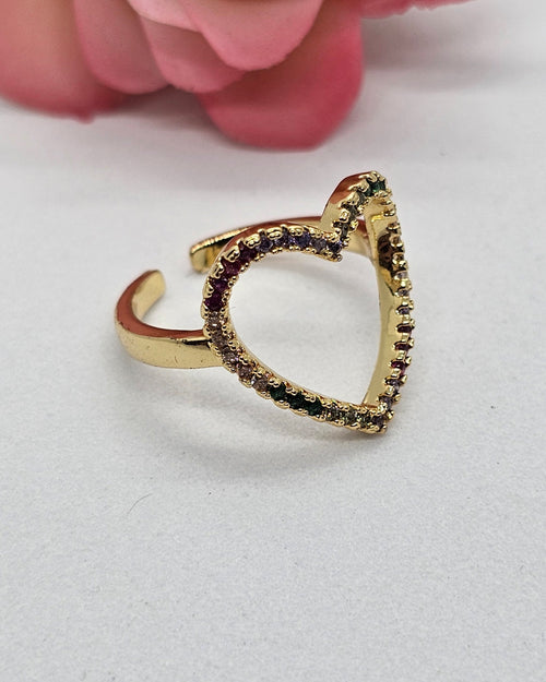 Colar semijoias ouro 18k Coração grande com detalhe rosa claro.