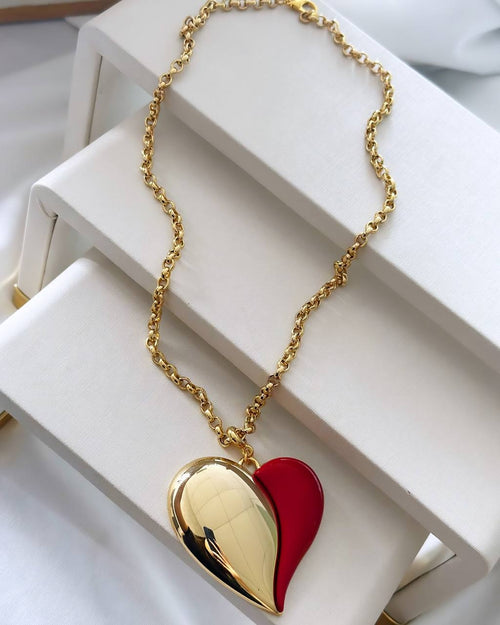 Colar semijoias ouro 18k Coração grande com detalhe vermelho .
