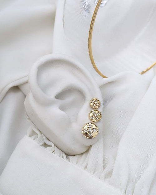 Trio de brincos Folheado a ouro 18k Inspiração Virginia cravejado.